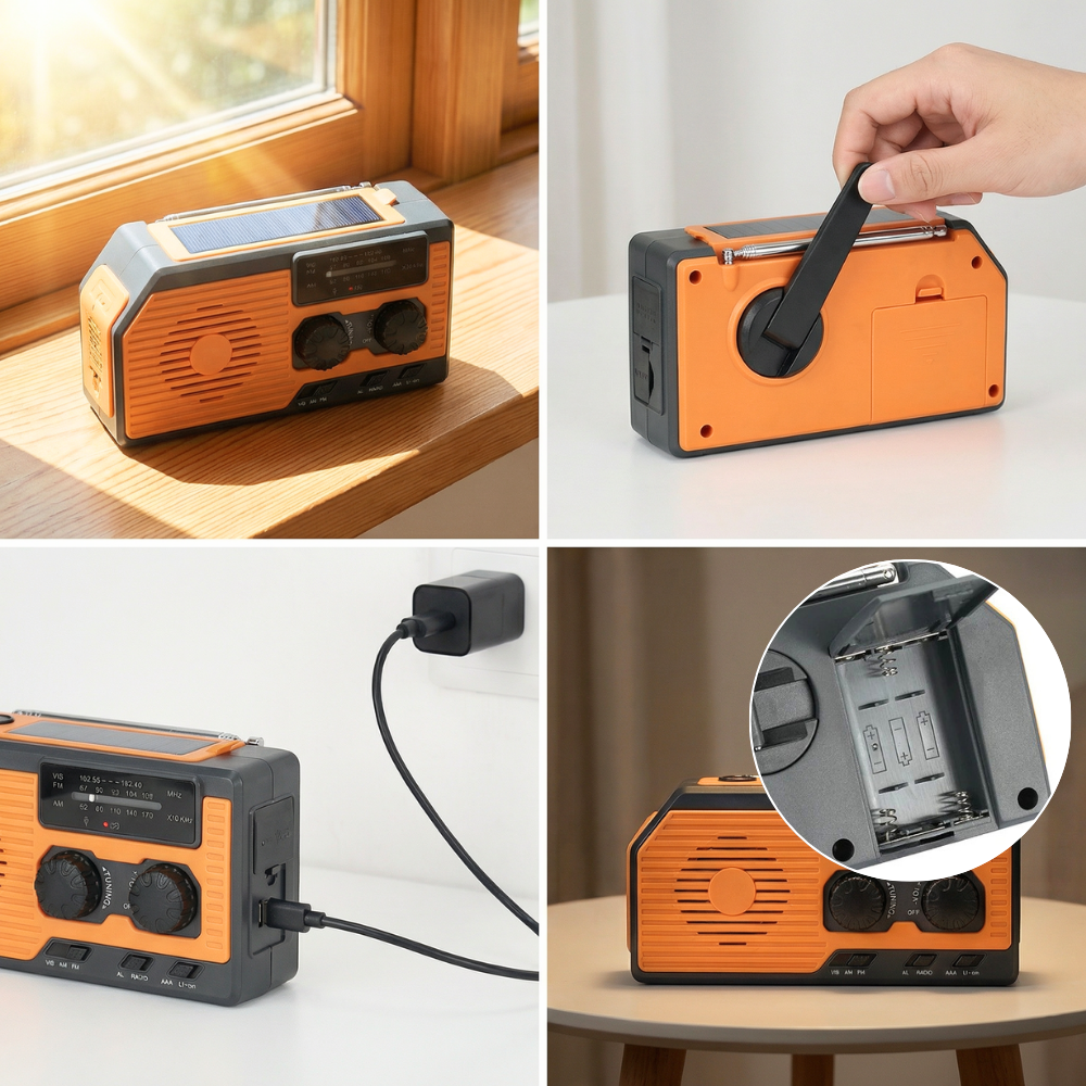 During power outages, natural disasters, or outdoor activities, this device combines radio reception, powerful lighting, an SOS alarm, and mobile charging in a compact, dependable solution.