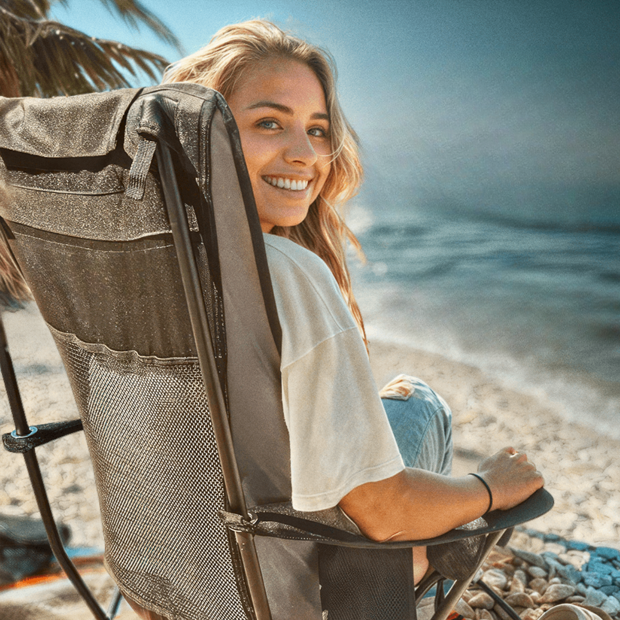 Whether on the beach, in the forest, or on the lawn, the Camping Chair PRO’s lightweight yet sturdy design makes it versatile for any outdoor setting.