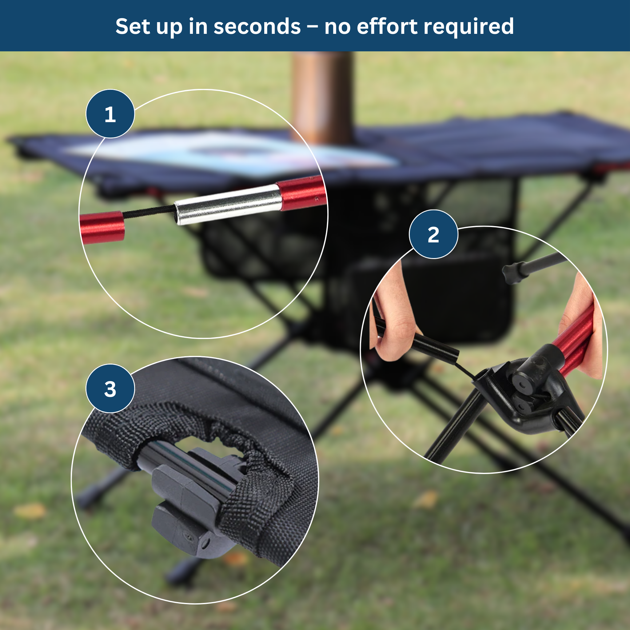 In less than a minute, the table is set up: unfold, attach the legs, and insert the tabletop – leaving you with more time to enjoy your adventure in nature.