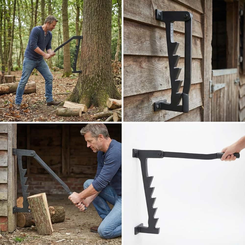 The firewood splitter can be mounted on a wall, tree, or low to the ground, adapting to different working conditions.