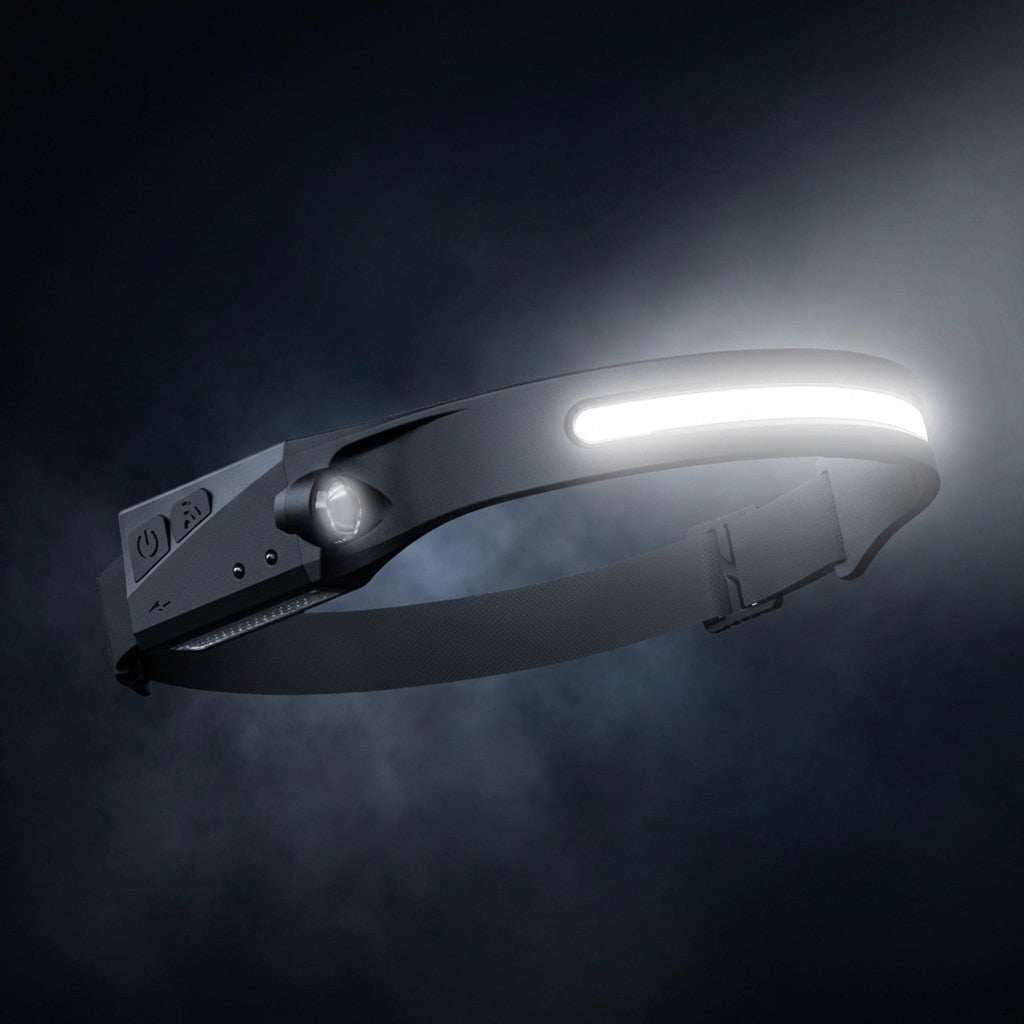 The special feature of our NaturVibes Headlamp is the long COB light strip integrated along the forehead.