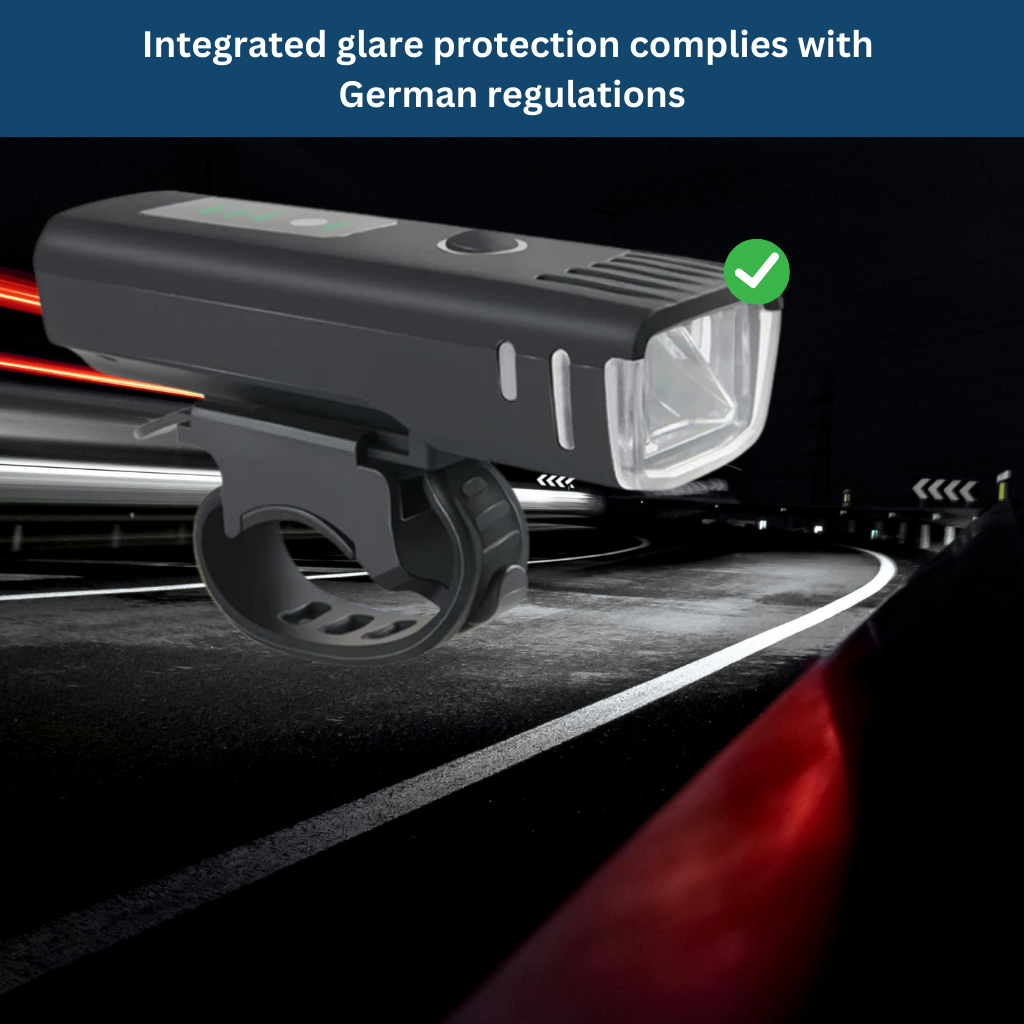 Yes, the Nova Frontlight complies with German regulations, ensuring that oncoming traffic is not blinded.