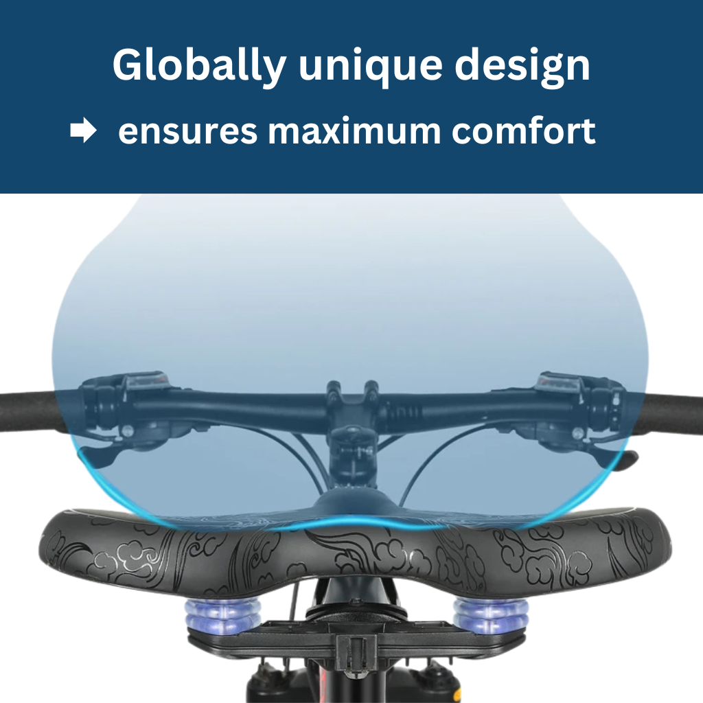 With our NaturVibes Phoenix Bike Saddle, you’ll ride in comfort, thanks to its extra-wide design, memory foam, and our innovative shock absorption system – like riding on clouds!