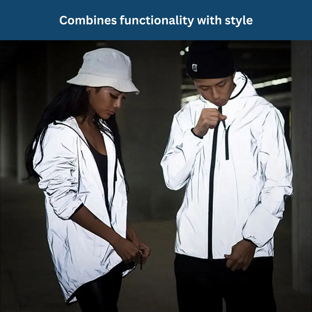 Experience maximum safety and visibility in any weather with our Reflect Rain Jacket.