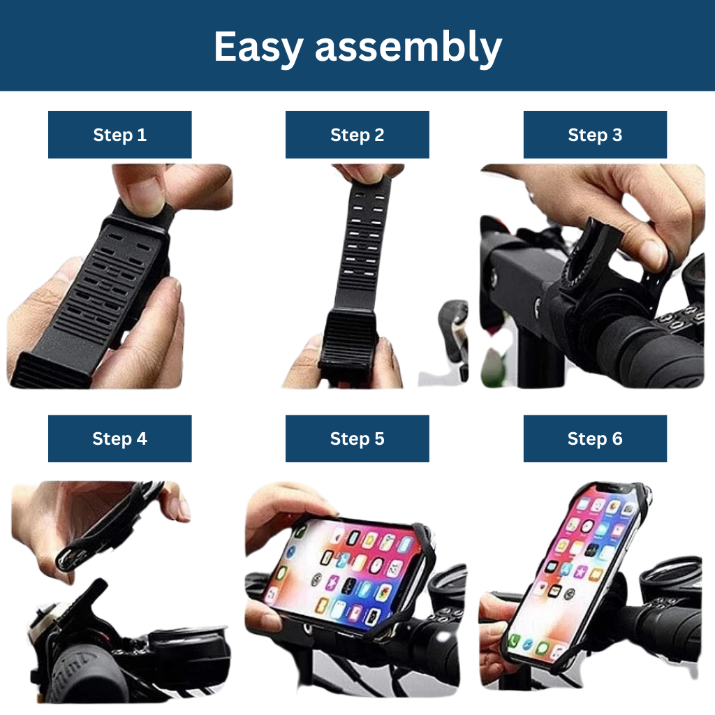 The flexible material perfectly adapts to any smartphone. Simply slide it through the top and bottom loops and secure it to your handlebars. The holder is mounted only once and stays firmly attached to your bike.