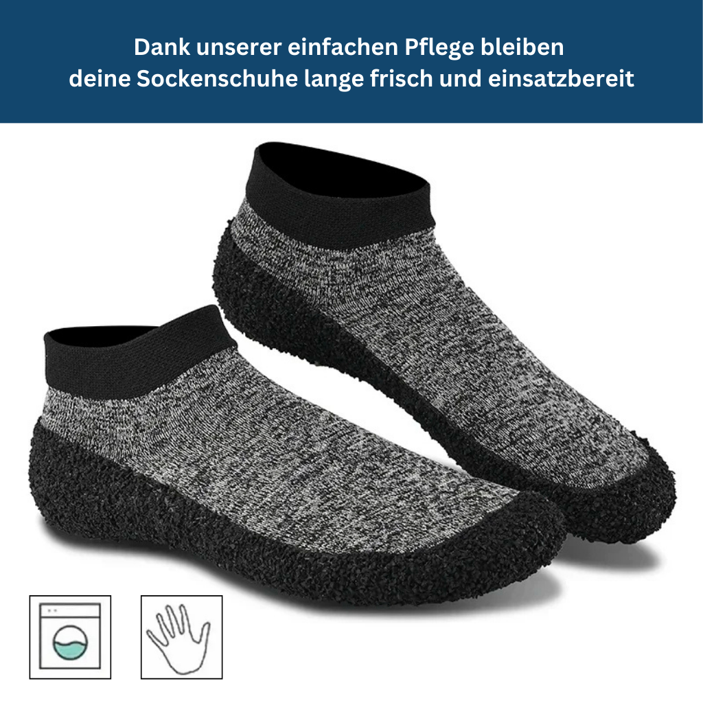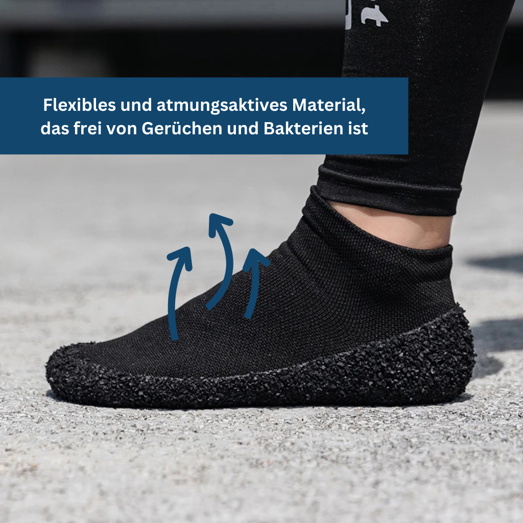 Unsere Sockenschuhe bieten dir das Beste aus beiden Welten: die Freiheit einer Socke und den Schutz eines Schuhs. Sie sind ideal für alle, die gerne barfuß laufen, aber dennoch Schutz und Komfort wünschen.