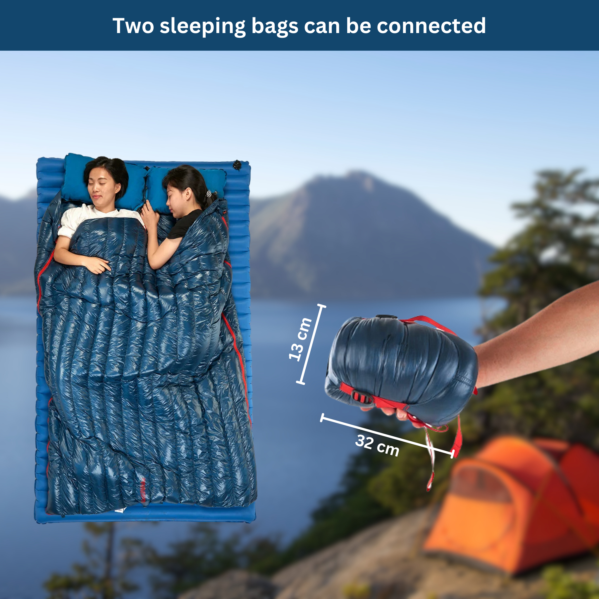 Yes, thanks to the practical zipper system you can connect two sleeping bags together to create a larger sleeping area - perfect for couples or families.