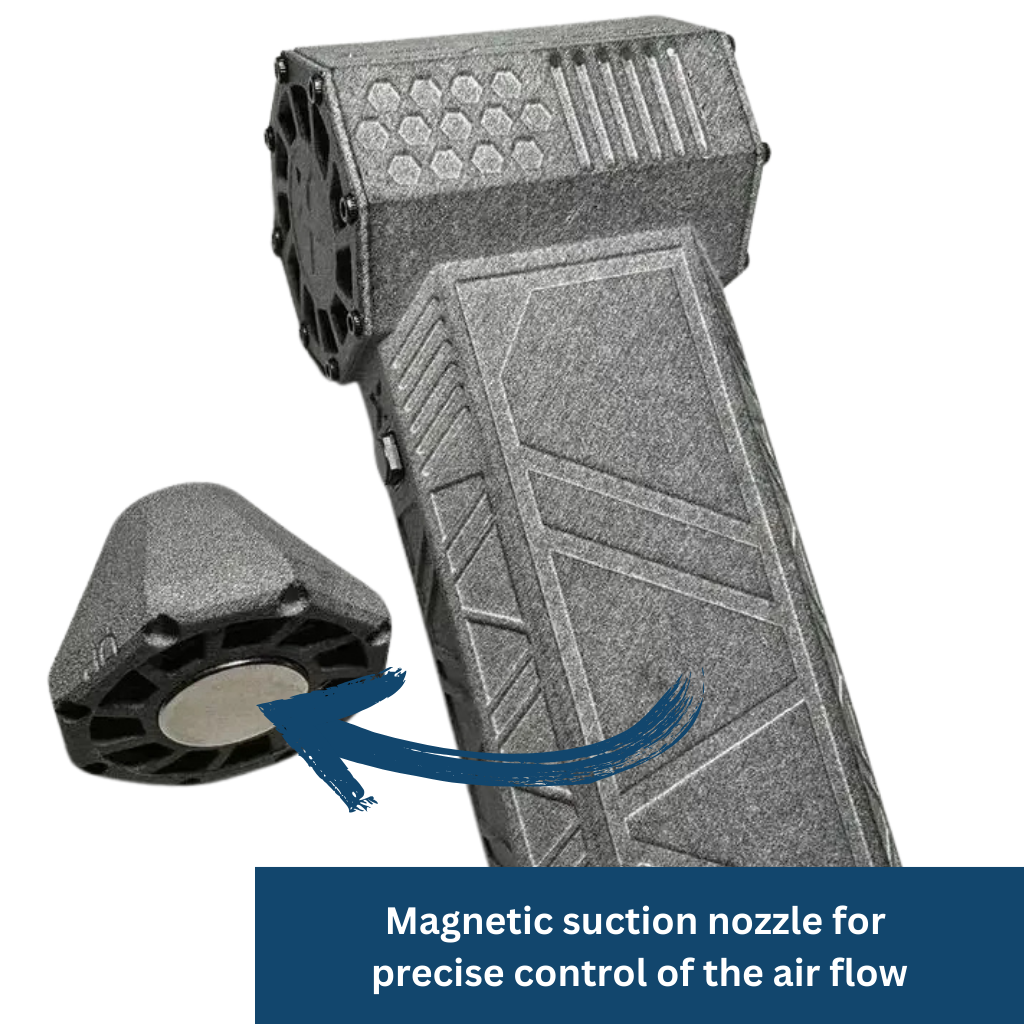 The magnetic suction nozzle of the TurboBreeze Pro allows for precise control of the airflow, supporting effective and targeted cleaning in various areas.