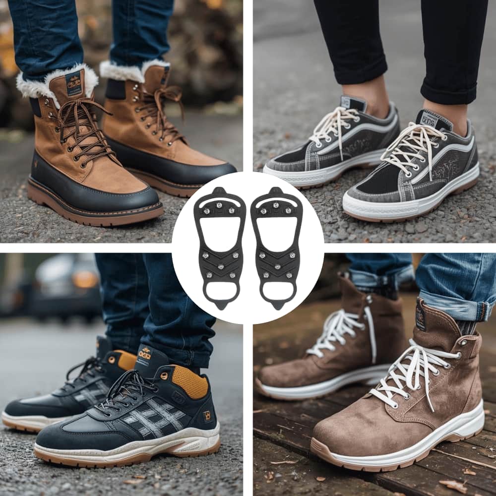 Whether you wear hiking boots, sneakers, work shoes, or casual footwear, the spikes fit snugly around the shoe and stay firmly in place without slipping.