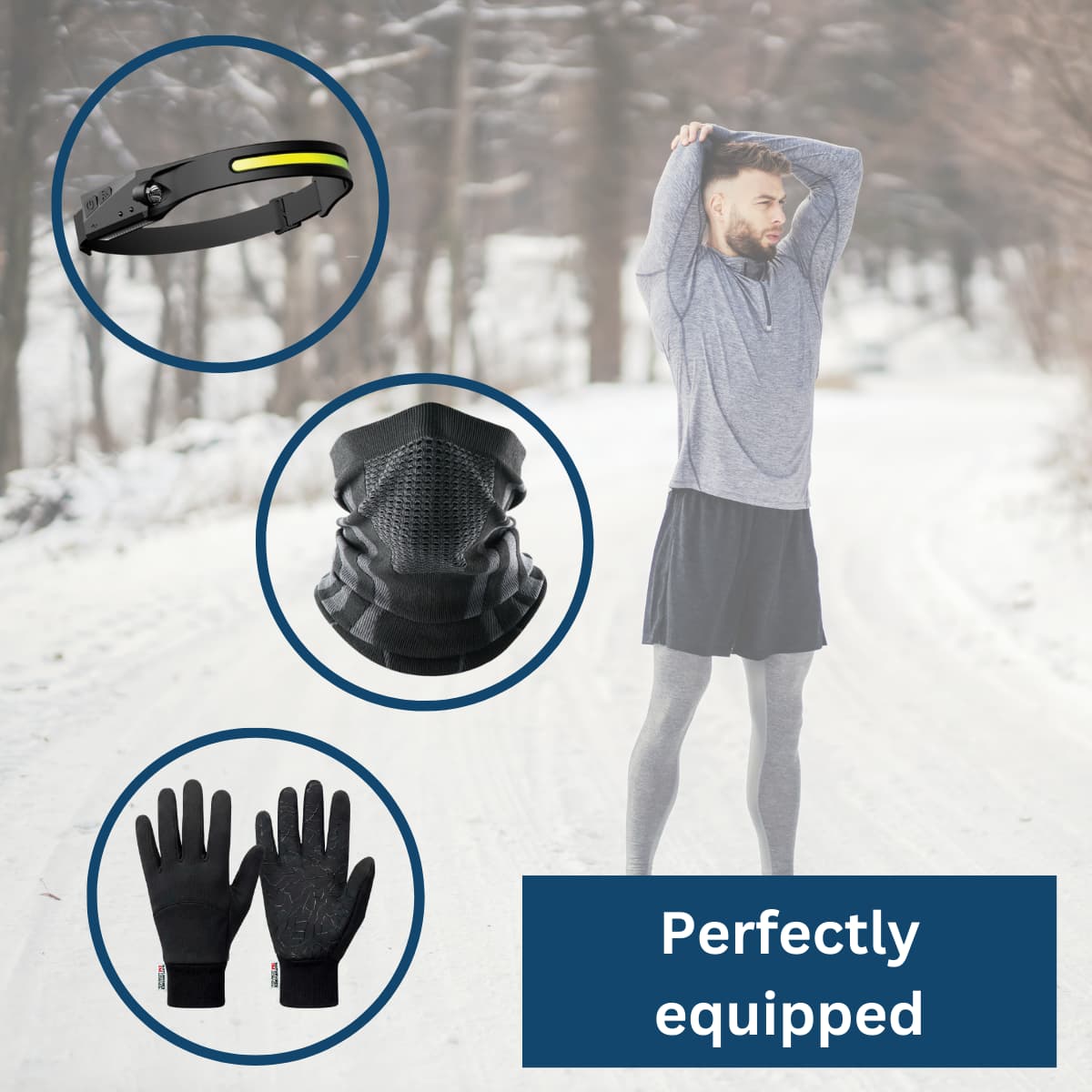 Our VIP Winter Bundle includes the following products: The NaturVibes Headlamp - The Original, the NaturVibes Premium Neck Gaiter - Unisex, and the NaturVibes ThermoLite Gloves.